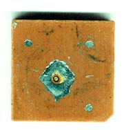 La antena despegada de la unidad. Se observa un contacto central. Esta cara es la que estaba unida al sitio que pone "lugar donde tiene que ir la antena" que se ve en la imagen de al lado. Mirad la muesca de una de las esquinas, que identifica su posición en la placa. Los tres puntos pequeños de soldaduras no se para que sirven, porque no sujetan la antena. |