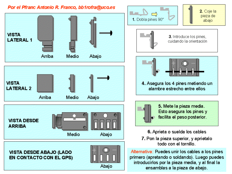 Si no lo veis claro, me lo haceis saber enviandome un mensaje de SUGERENCIA, y yo lo arreglaré. En la imágen debereis de fijaros con aención en las diferentes piezas, porque éstas sirven de referencia para saber cómo deben disponerse las piezas. En realidad es un proceso muy sencillo, quizás más que el del conector tradicional.