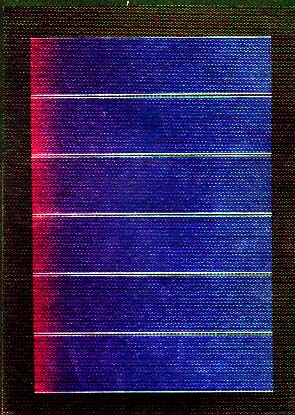 Esta es la parte de atrás de "mi" placa solar, en la que se especifica las caracteristicas técnicas. En la parte de arriba se ven los dos contactos a los que he soldado el cable (el cable negro se distingue mal). Se ve que es capaz de dar 2,68W, hasta 0,33A con un voltaje de 8,1 voltios. En el resto de las especificaciones me pierdo, porque ya dan otros voltajes (12, 30) y diferentes amperajes (0,33, 0,4). Necesito que me aclaren. Insisto que esta placa tiene el tamaño de un folio A4, y el grosor de 10 de ellos. Es relativamente flexible. algo que es importante porque las placas rígidas pueden ser muy frágiles. Lo que veis aqui abajo es el frontal de la placa en tamaño reducido. ![]() |