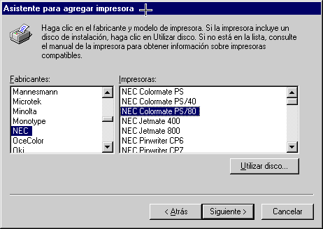 deseada. En este caso yo he escogido una impresora NEC Colormate PS/80