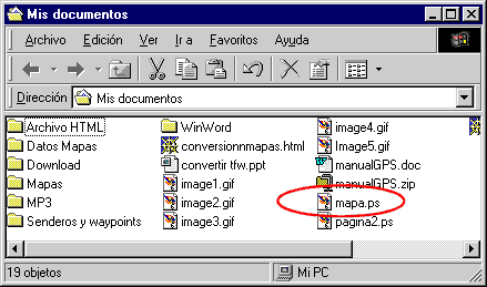 de un archivo postscript, como mapa.ps (evitar usar la terminación